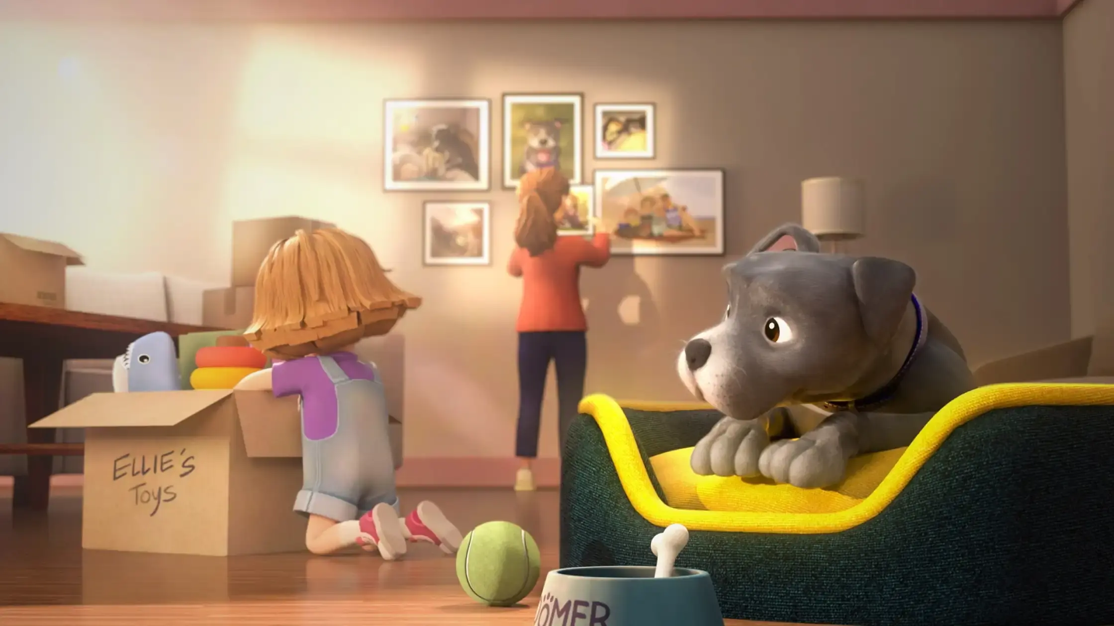 So the team built the world around small, believable details. Boomer’s flappy ears kept him playful and puppy-like. Ellie’s romper made her feel energetic and warm. The environments, lighting, and color shifts helped carry the emotion scene by scene, moving from cooler night tones into a softer, warmer ending as the reunion came into view.