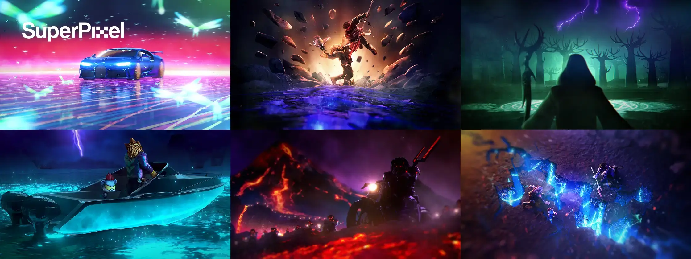 From there, the work shifted into turning that pre-production into a polished 60-second cinematic trailer through stylised 3D animation, FX-driven sequences, world transitions, and lighting.