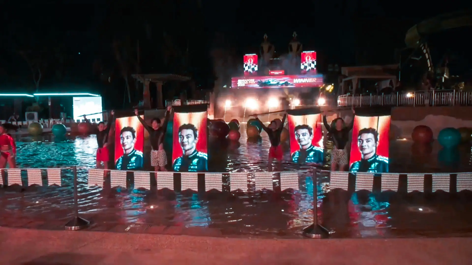 The event visuals were designed to live across three different screen types, each with its own scale, orientation, and viewing distance. From the Main Pool Stage at Bluewater Bay Wave Pool, which featured five coordinated screens, to Bay Level 2 LED screens and the Seahorse | Cool Pool LED screen, each canvas required a tailored visual approach.